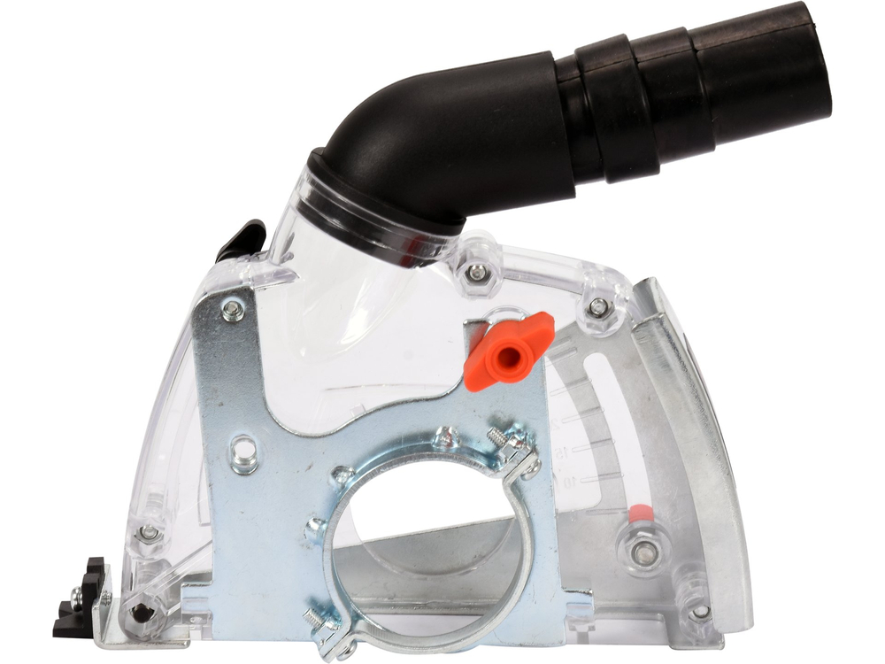 Apsauga su dulkių nusiurbimu skirta darbui su 115 mm ir 125 mm kampiniais šlifuokliais, turinčiais standartinį M14 veleno sriegį. Konstrukcija leidžia prijungti dulkių siurblį per specialų antgalį su redukcijomis, o skaidrus korpusas pagerina pjovimo zonos matomumą. Reguliuojamas pjovimo gylis padeda tiksliau nustatyti pjūvio gylį.
