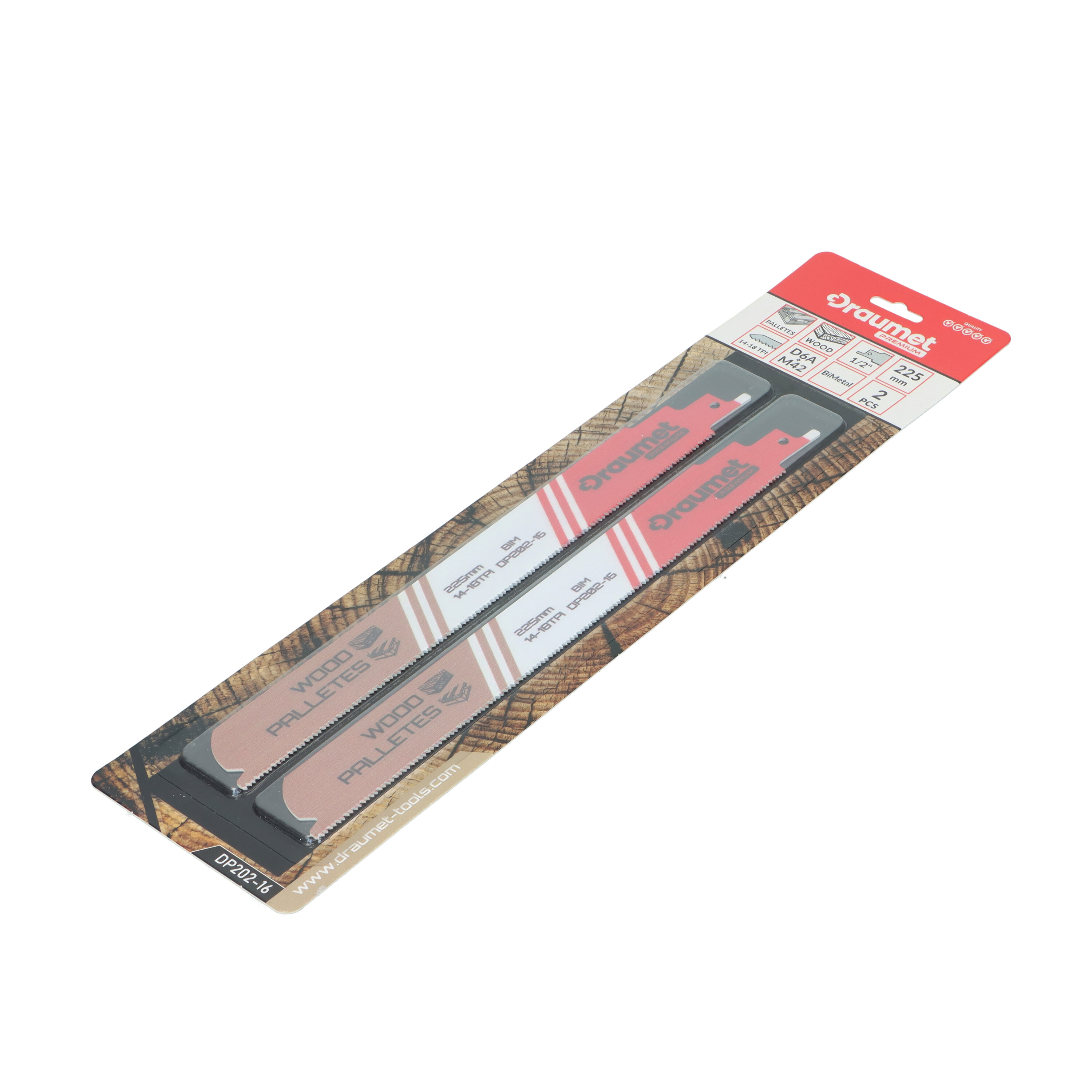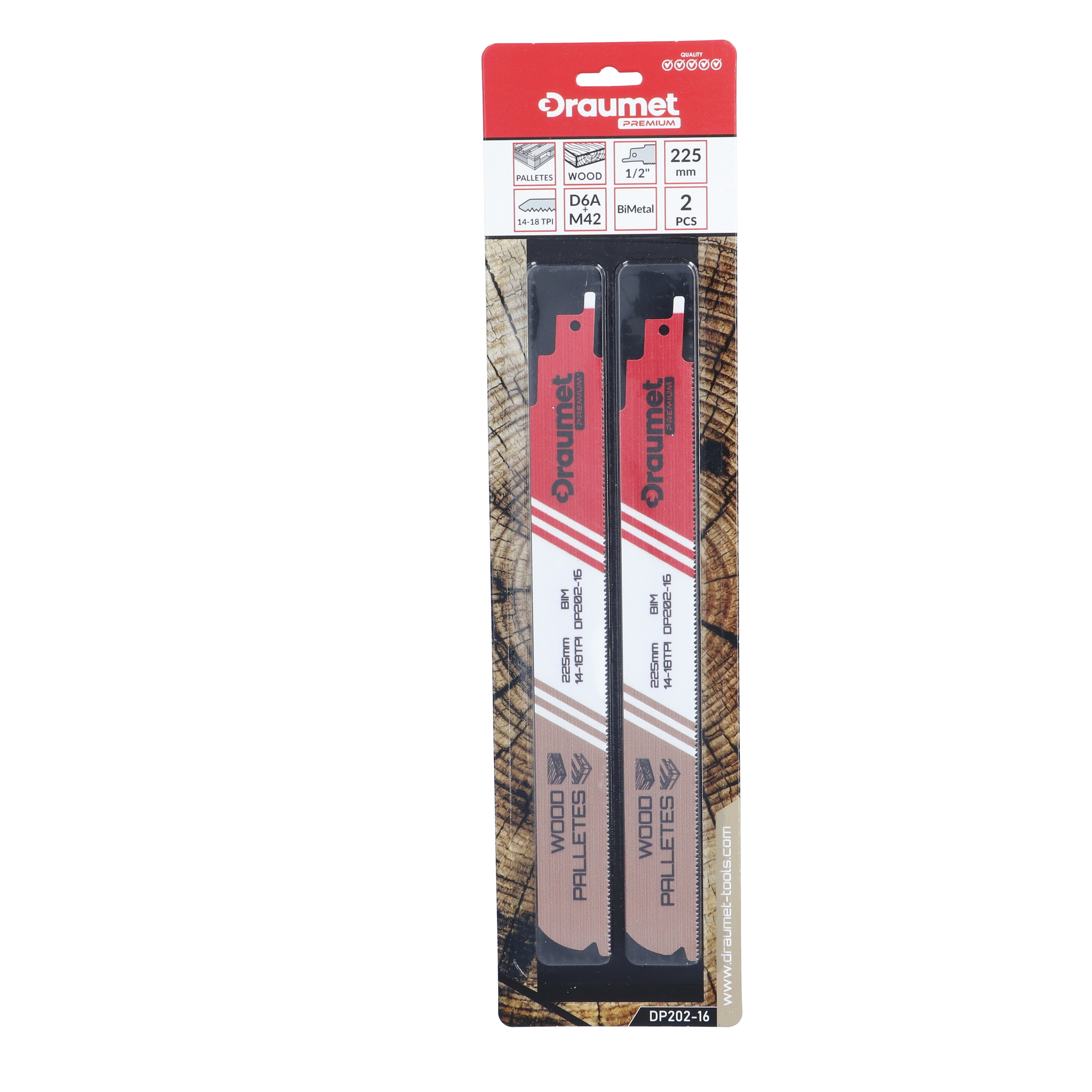 DRAUMET PREMIUM DP202-16 – profesionalūs bi-metalo atsarginiai pjūkleliai elektriniam siaurapjūkliui, skirti medienos ir padėklų pjovimui. Aukštos kokybės D6A+M42 plienas užtikrina ilgaamžiškumą ir atsparumą dėvėjimuisi, o universalus tvirtinimas leidžia naudoti pjūklelius su dauguma populiarių elektrinių siaurapjūklių. Komplekte yra 2 pjūkleliai, todėl sprendimas patogus dažnai dirbantiems su šiuo įrankiu.