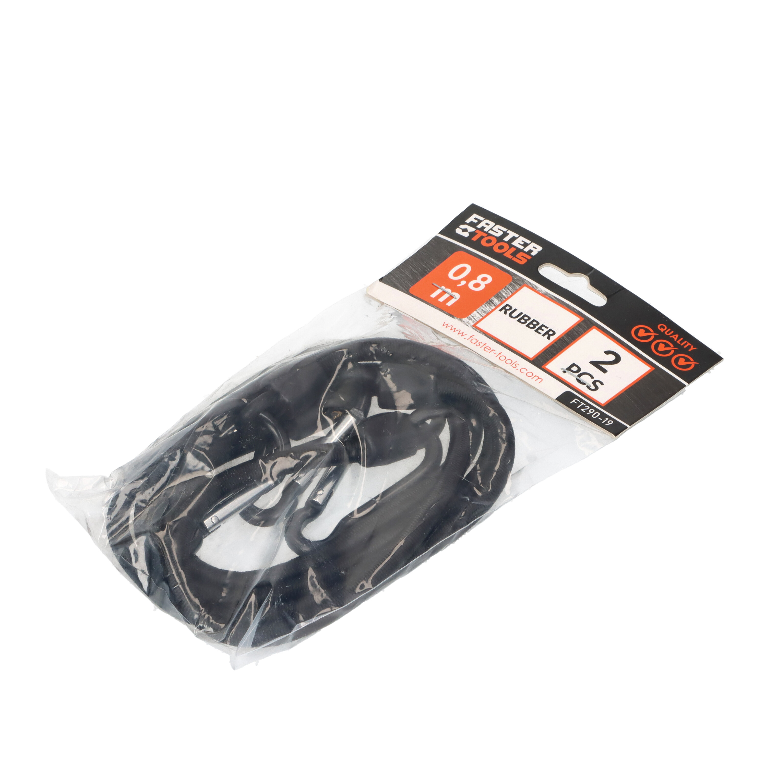 Tvirtinimo guma bagažui su karabinais 0,8 m (2 vnt.) FASTER TOOLS (FT290-19)